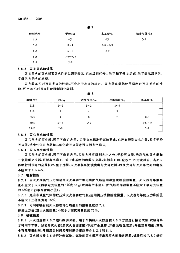 GB 4351.1-2005手提式滅火器第1部分性能和結(jié)構(gòu)要求