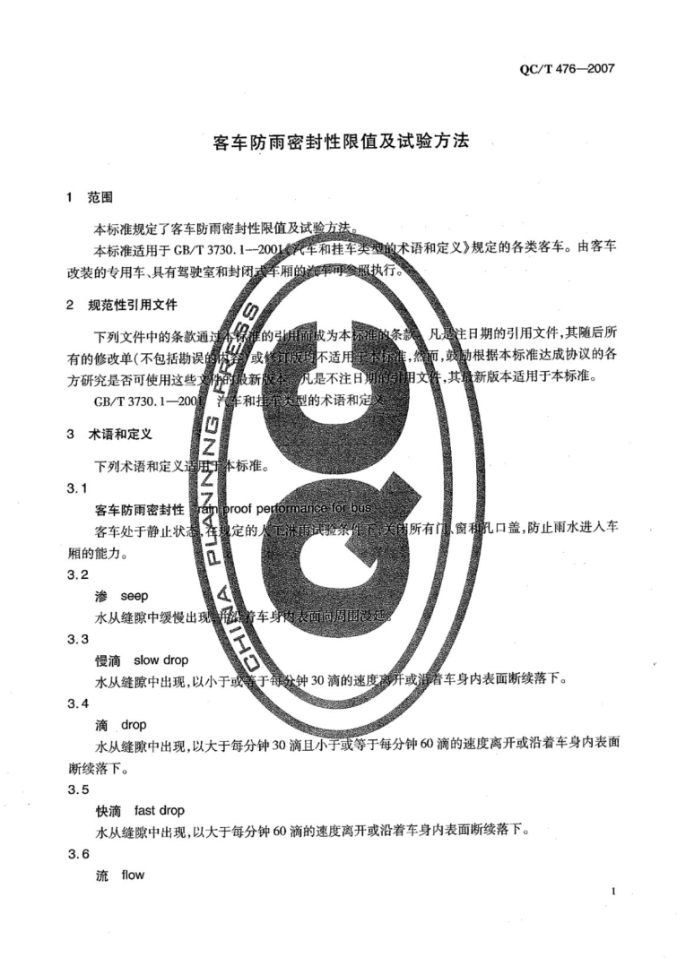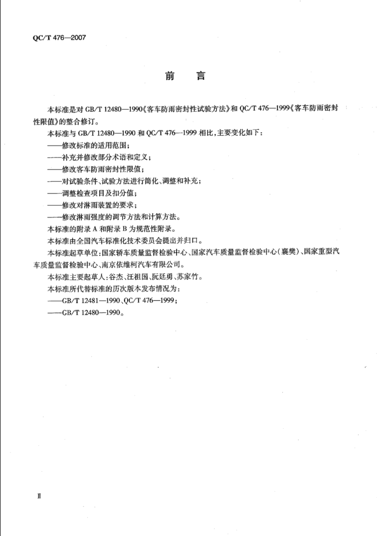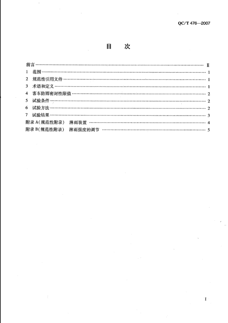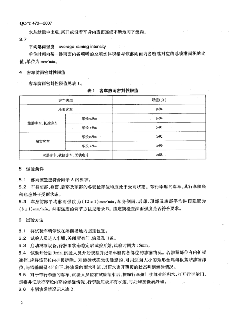 QC/T 476-2007《客車防雨密封性限值及試驗(yàn)方法》