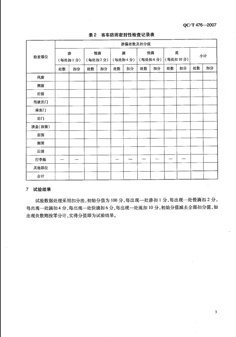 QCT-900-1997 《汽車整車產(chǎn)品質(zhì)量檢驗(yàn)評(píng)定方法》:淋雨試驗(yàn)