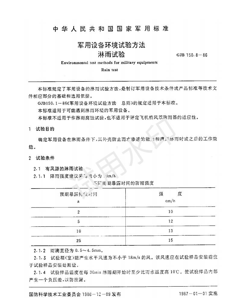 GJB150.8-1986 《軍用設(shè)備淋雨試驗(yàn)方法》