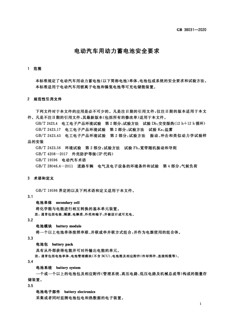 GB38031-2020《電動(dòng)汽車用動(dòng)力蓄電池安全要求》
